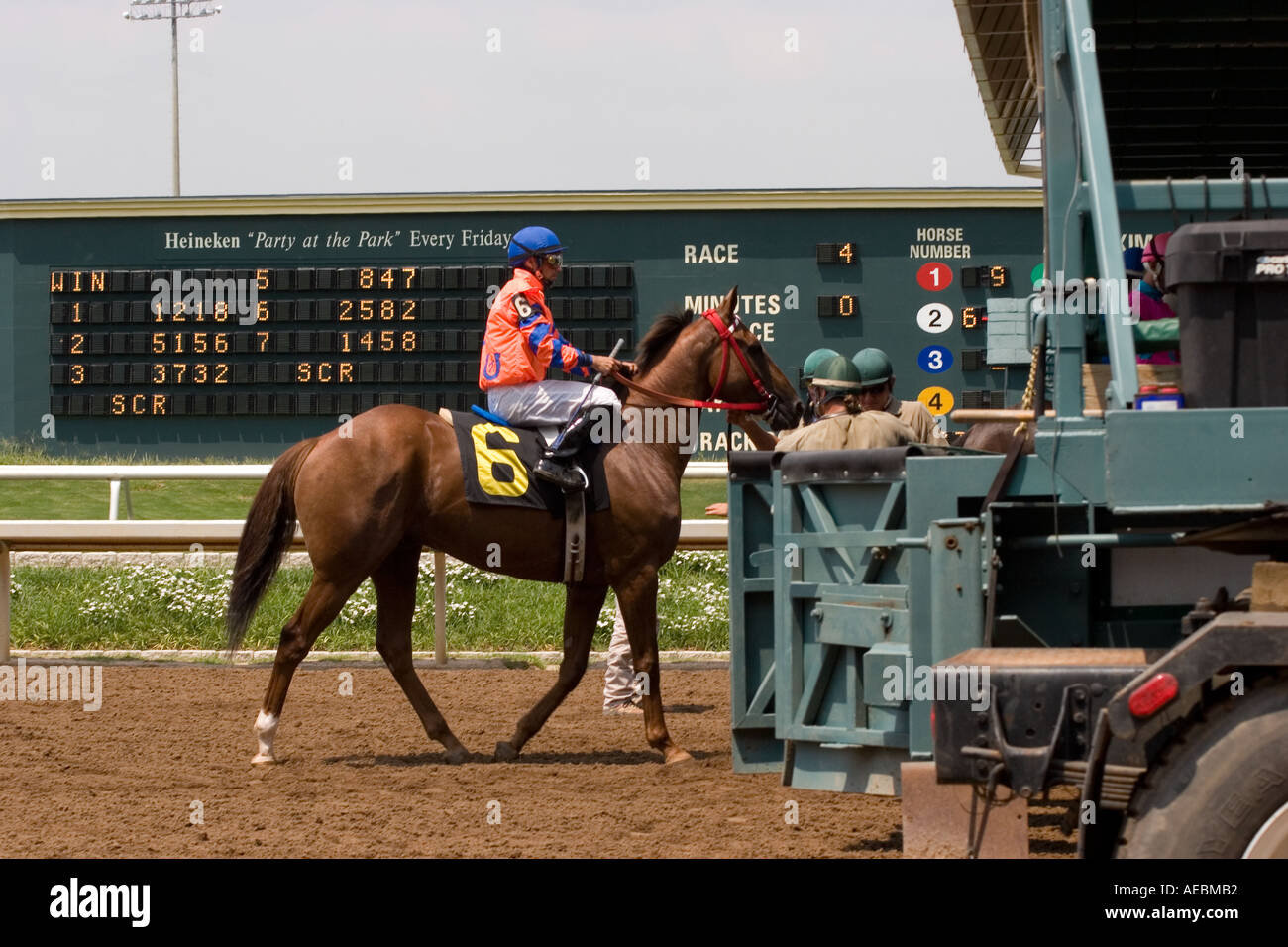 Horse Enters Starting Gate Handlers Get Horse Set For A Race At The
